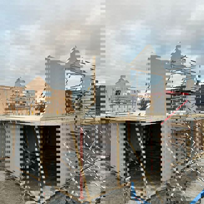 Technisch gezien was het bouwen op de bestaande vloer en fundering een belangrijk aandachtspunt. Door hier zorgvuldig op aan te sluiten, is een stabiele en duurzame basis gecreëerd. De woning is aan de binnenzijde uitgevoerd in houtskeletbouw, met strak gestukte gevels aan de buitenkant. Twee grote dakkapellen over de volledige breedte van de woning zorgen voor extra ruimte en veel daglicht op de verdieping.